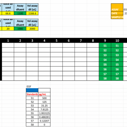 Before performing an MSD Assay, we needed to modify the protocol based on the number of wells we would use. We also need to create the plate layout for which wells will be samples versus standards.