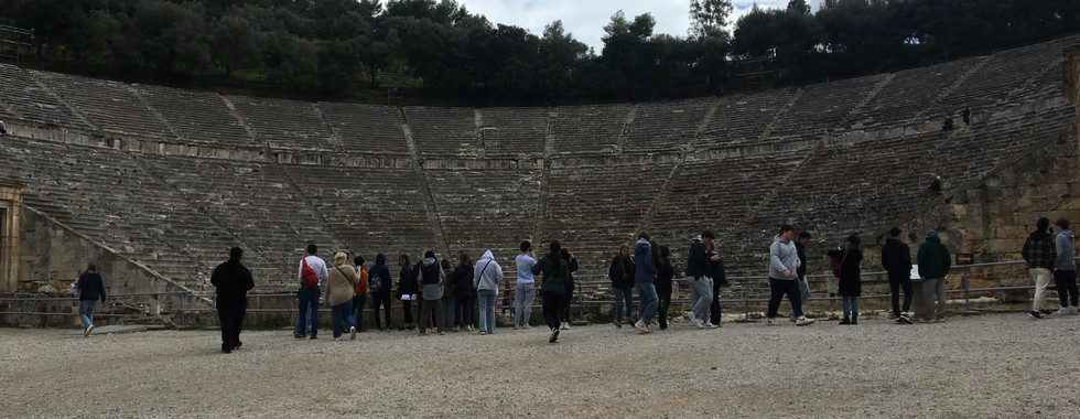 This morning was our coldest yet, but the rain stayed away so we bundled up and headed for Mycenae, the hilltop citadel of the ancient Greek hero and king, Agamemnon. As we strode past the enormous “Cyclopean Rocks” and under the impressive “Lion's Gate” entrance, we were transported back to the second millennium BC. Surrounded by steep mountains on three sides and a long, flat plain leading to the sea on the fourth, it seemed impossible to imagine the citadel ever being over-run. On the way out of Mycenae, we stopped at the “Treasury of Atreus”, one of the best surviving examples of an ancient “Tholos”, or beehive tomb, named after its resemblance to the shape of a beehive. After Mycenae, we headed north to Epidaurus to visit its famous theater, one of the most well-preserved in all of the ancient Greek world. The theater boasts a seating capacity of 13,000, with amazing acoustics and stunning views. After visiting the theater, Antonio treated us to a delicious lunch at his restaurant in Epidaurus then it was off to our final stop, Athens! Dinner on our first night in Athens was the best yet!