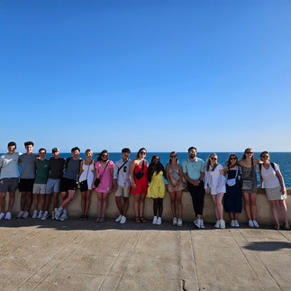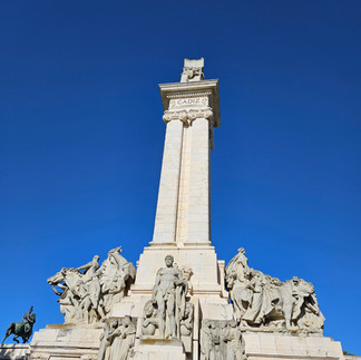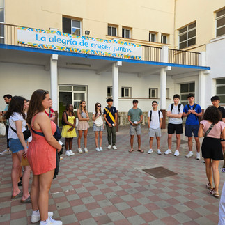 It was a beautiful day in Cádiz today: sunny, warm and dry. In the morning, we met in front of our school, Colegio María Auxiliadora—Salesianas, before classes for our orientation of the buildings. After taking classes together, we went home for lunch and met again on the beach. In the evening we met with our guide Álvaro for a walking tour of the old city. We began our tour of the streets and history of Cádiz in the Plaza de España and wound our way through Plaza de Mina, Plaza de San Antonio, and Plaza de las Flores before finishing the walk in front of the Cathedral de la Santa Ana de Cádiz. Tomorrow we will return to the old city for a tour of the inside of the Cathedral and a scenic view of the city from the Torre de Poniente.