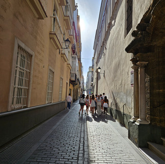 This morning we returned to Salesianas for language and culture classes with our teacher Rosa, and in the early afternoon we chatted with a group of 12- and 13-year-old Spanish students for an hour. Some of us had lunch with locals we met at school, while others went home for lunch before we met again for a more detailed tour of the Cathedral de la Santa Cruz de Cádiz and a trip to the top of Torre de Poniente.